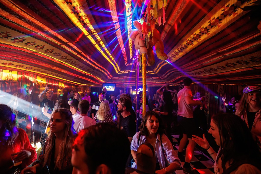 totale chaos in 7 minuten tijd, alsof 12 uur festival in één tent is gestopt.